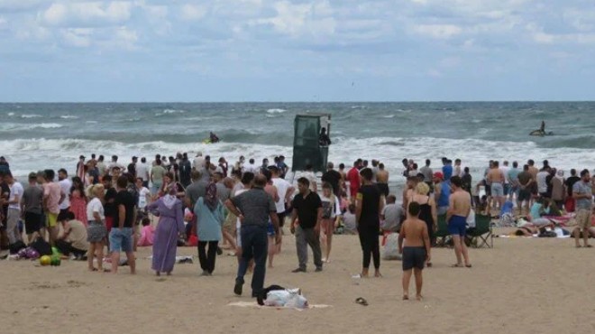 Plajda görevli cankurtaranlar, megafonla da bu uyarıyı vatandaşlara iletti. Anonsların ardından vatandaşlar plajları boşalttı.