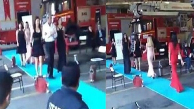 ?İtfaiye Daire Başkanı Cahit Küçükönder'in de bulunduğu sırada yapıldığı öğrenilen defilenin görüntüleri kısa sürede sosyal medyada yayılınca tepki gördü.