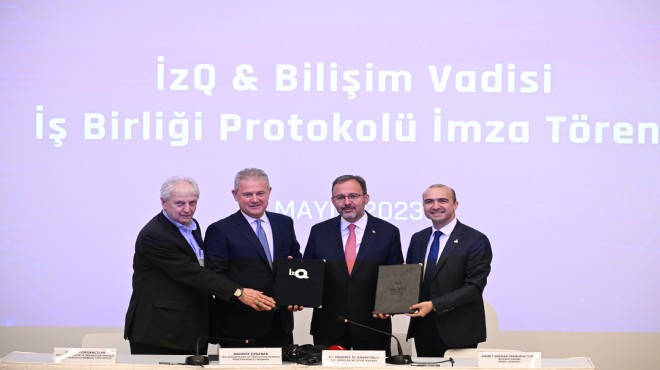 Gençlik ve Spor Bakanı Mehmet Muharrem Kasapoğlu, İzmir Ticaret Odası (İZTO) Yönetim Kurulu Başkanı Mahmut Özgener, Ege Bölgesi Sanayi Odası Başkanı Ender Yorgancılar ile Bilişim Vadisi Genel Müdürü Ahmet Serdar İbrahimcioğlu'nun katılımıyla İzQ ile Bilişim Vadisi kurumları arasında işbirliği protokolü imzalandı.