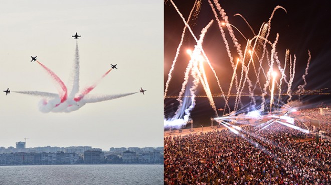 Saat 17.00'de Süvari Birlikleri'nin Cumhuriyet Meydanı ile Gündoğdu Meydanı arasındaki yürüyüşünden sonra İzmir semaları, saat 17.30'dan itibaren önce Solo Türk ardından da Türk Yıldızları'nın nefes kesen gösterilerine sahne olacak.