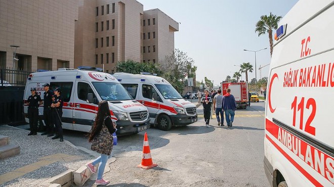 İzmir Adliyesi'nde, 11 Ekim'de yangın söndürme tüplerinin periyodik bakımı sırasında karbondioksit gazı kaçağı meydana gelmiş, 29 kişi hastanelere kaldırılmış, işçi Salih Ataoğlu (47) yaşamını yitirmişti. (AA)