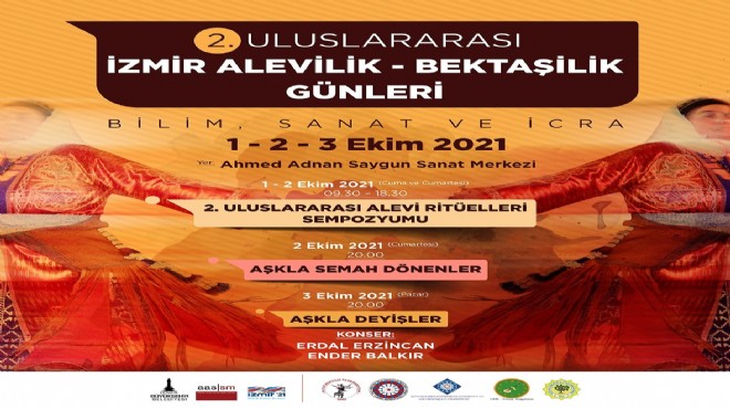Program kapsamında 1Ekim Cuma ve 2 Ekim Cumartesi günleri Ahmed Adnan Saygun Sanat Merkezi Küçük Salon’da “2. Uluslararası Alevi Ritüelleri Sempozyumu” yapılacak. Sempozyuma Türkiye’nin yanı sıra Amerika, Kanada, İngiltere, Avusturya, Polonya, Bulgaristan ve Azerbaycan’dan alevi ritüelleri konusunda uzman bilim insanları katılacak. Sempozyum oturumları 10.00 ile 18.30 saatleri arasında olacak. 2 Ekim cumartesi 20.00’de Ahmed Adnan Saygun Sanat Merkezi Büyük Salon’da ise “Aşkla Semah Dönenler” etkinliği var. Etkinliğe Türkiye ve Bulgaristan’da yerleşik Alevi ocak süreklerinin geleneksel cem semahlarını icra eden altı topluluk katılacak. 3 Ekim Pazar 20.00’de “Aşkla Deyişler” etkinliğinde de Alevi müziğinin önemli icracılarından Erdal Erzincan ve Ender Balkır sahne alacak.