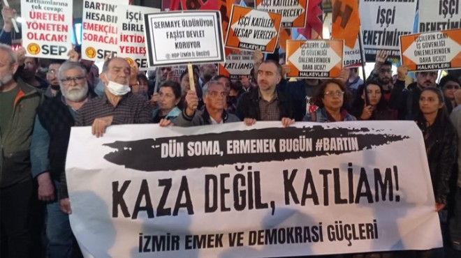 Bartın’ın Amasra ilçesindeki dün meydana gelen ve 41 işçinin yaşamını yitirdiği maden ocağındaki patlama İzmir'de protesto edildi.
