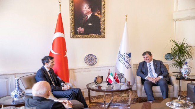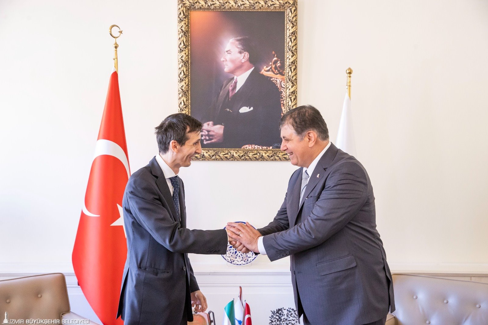 İtalya’nın İzmir Konsolosu Daniele Bianchi, İzmir Büyükşehir Belediye Başkanı Dr. Cemil Tugay’ı makamında ziyaret etti. Başkan Tugay, İtalya ve İzmir arasında olabilecek iş birlikleri hakkında Bianchi ile fikir alışverişinde bulundu. Bu yıl 30 Ağustos ile 9 Eylül tarihleri arasında düzenlenecek 93’üncü İzmir Enternasyonal Fuarı hakkında bilgi veren Başkan Cemil Tugay, İtalya’yı “partner ülke” olarak davet etti. Bianchi ise gerekli kurumlarla görüşeceğini belirtti.
