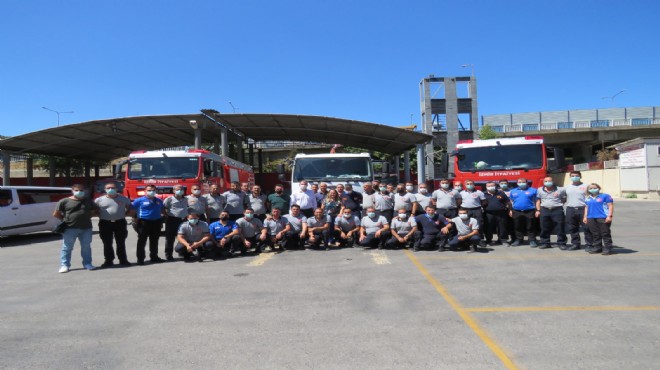İtfaiye Dairesi Başkanı İsmail Derse de “Sizler orada özverili çalışırken buradaki arkadaşlarınız da İzmir için teyakkuza geçti. Hepiniz sağ olun" diye konuştu.
