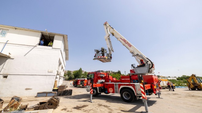 Tatbikatta çeşitli kurtarma ve tahliye uygulamaları yapıldı. Senaryo gereği İZSU Karabağlar Şantiyesi’nde iş sağlığı ve güvenliği ekipmanlarının olduğu ambarda mahsur iki personel çıkan yangından bir dakika gibi kısa bir sürede kurtarıldı. Bir itfaiye personeli tarafından merdivenli arazöz yardımıyla ile başarılı bir şekilde binanın dışında hazır bekleyen acil müdahale ekiplerine ulaştırıldı. İzmir Büyükşehir Belediyesi İtfaiye Dairesi tarafından afet durumlarında hızlı ve etkili müdahalenin önemi vurgulandı. Personelin ve vatandaşların afet ve acil durumlara karşı hazırlıklı olmasının hayati önemine değinildi.