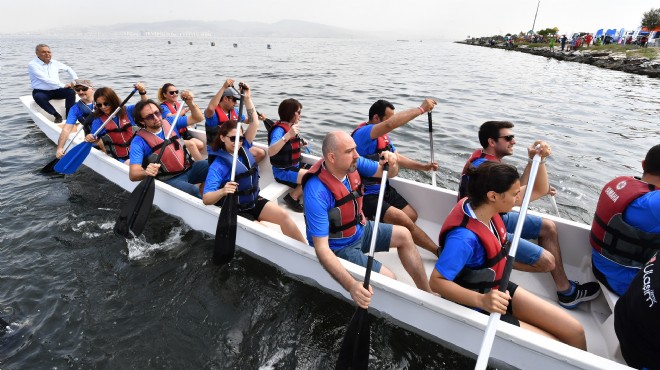 Kentin önde gelen firmalarının, çalışanlarından oluşturdukları ekiplerle kano yarışı yaptıkları festivalde İzmir Büyükşehir Belediyesi de vardı.