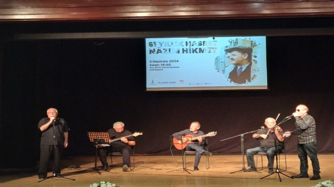 İzmir Büyükşehir Belediyesi, 15'ler Birlik Dayanışma Bilim ve Kültür Derneği, Ege 78'liler Demokrasi ve Dayanışma Derneği, İzmir 68'liler Platformu iş birliğiyle Türk edebiyatının önemli isimlerinden Nâzım Hikmet’i aramızdan ayrılışının 61’inci yılında “61 Yıllık Hasret Nâzım Hikmet” başlıklı etkinlikle andı. Kent Arşivi, Müzeler ve Kütüphaneler Şube Müdürlüğü tarafından organize edilen etkinlik, Nâzım Hikmet’in Kültürpark’taki heykeli önünde başladı. 15'ler Birlik Dayanışma Bilim ve Kültür Derneği Başkanı Ayhan Dümen, Ege 78'liler Demokrasi ve Dayanışma Derneği Başkanı Bilgehan Oğuz, İzmir 68'liler Platformu Başkanı Nail Dağdelen Nâzım Hikmet’in sanatının evrenselliği ve onun mücadele dolu yaşamı üzerine konuşmalar yaptı.