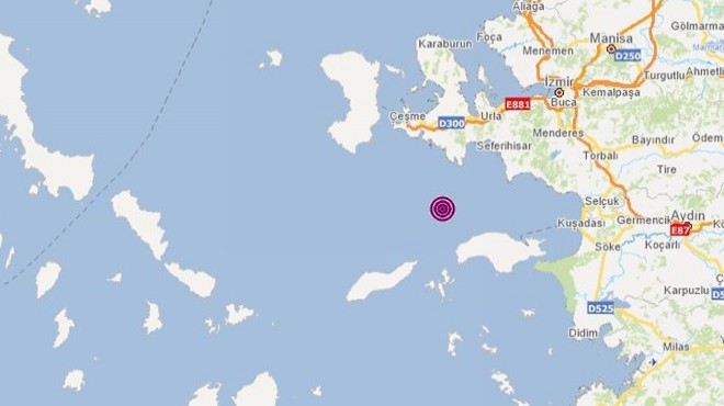 Afet ve Acil Durum Yönetimi Başkanlığının (AFAD) internet sitesinde yer alan bilgiye göre, saat 22.16'da Ege Denizi'nde 4,2 büyüklüğünde sarsıntı kaydedildi.