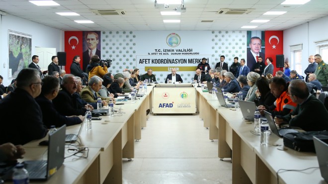 İzmir'de de bölgeye gönderilecek yardımlarla ilgili önemli bir toplantı yapıldı. İzmir Valiliğine bağlı İl Afet ve Acil Durum Müdürlüğü'nde gerçekleşen toplantıya Vali Yavuz Selim Köşger'in yanı sıra Ege Ordu Komutanı Korgeneral Kemal Yeni, İzmir Büyükşehir Belediye Başkanı Tunç Soyer, ilgili kurum, kuruluş ve STK yetkilileri katıldı.