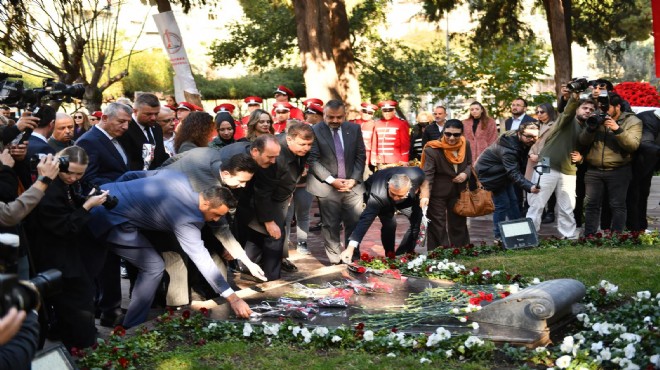 Başkan Tugay'ın eşi Öznur Tugay'ın yanı sıra MHP İzmir Milletvekili Tamer Osmanağaoğlu, CHP'nin Karşıyaka Belediye Başkan Adayı Yıldız İşçimenler Ünsal, CHP'nin Çiğli Belediye Başkan Adayı Onur Emrah Yıldız, CHP Buca Belediye Başkan Adayı Görkem Duman, CHP Güzelbahçe Belediye Başkan Adayı Mustafa Günay, CHP Bayraklı Belediye Başkan Adayı İrfan Önal, CHP Bornova Belediye Başkan Adayı Ömer Eşki, AK Parti Karşıyaka Belediye Başkan Adayı İsmail Çiftçioğlu ile yurttaşların da katıldığı törende, anıt mezara karanfil bırakıldı. Başkan Tugay, ileri yaşta bulunan bir kadının mezara karanfil bırakmasına koluna girerek yardımcı oldu.