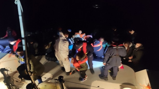 Dikili ilçesi açıklarında da 3 ayrı can salı içerisinde düzensiz göçmenlerin olduğu bilgisi üzerine bölgeye sahil güvenlik botu sevk edildi.
