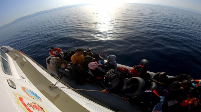 Sahil Güvenlik Komutanlığından yapılan açıklamaya göre, Foça ilçesi açıklarında lastik bot içerisinde bir grup düzensiz göçmen olduğu bilgisi üzerine bölgeye Sahil Güvenlik gemisi yönlendirildi.