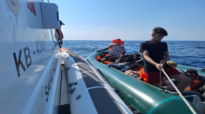 Çeşme açıklarında ise durdurulan lastik bottaki 17 düzensiz göçmen yakalandı.