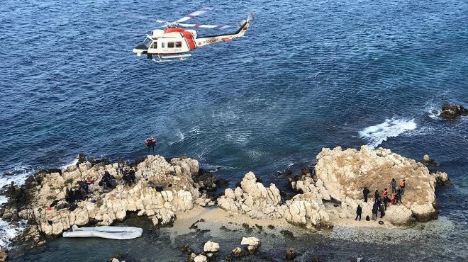 Alınan bilgiye göre, gece "ALO 158 Sahil Güvenlik İhbar ve Talep Hattı"nı arayan bir kişi, bir grup göçmenin denizdeki kayalıklarda mahsur kaldığı ihbarında bulundu.