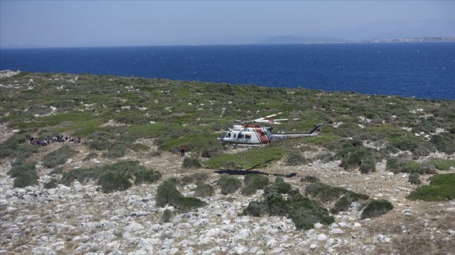 Boğaz Adası'na 7 kez sorti yapan 2 helikoptere alınan 34 düzensiz göçmen karaya çıkarıldı.