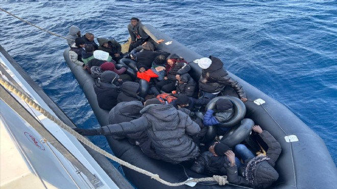 Sahil Güvenlik ekiplerince 2 lastik bottaki 20'si çocuk 50 düzensiz göçmen karaya çıkarıldı.