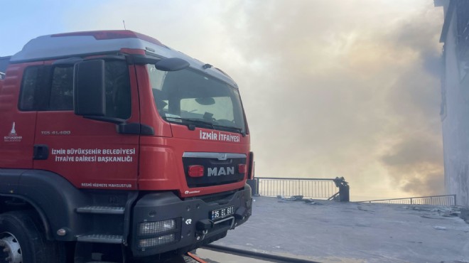 İzmir’in Gaziemir ve Buca ilçeleri arasında çıkan orman yangınına havadan ve karadan müdahale ediliyor. Yangında bir iş yeri ve üç araç kül oldu. Yangına, iki kişinin ormanda lastik yakmasının yol açtığı iddia edildi.