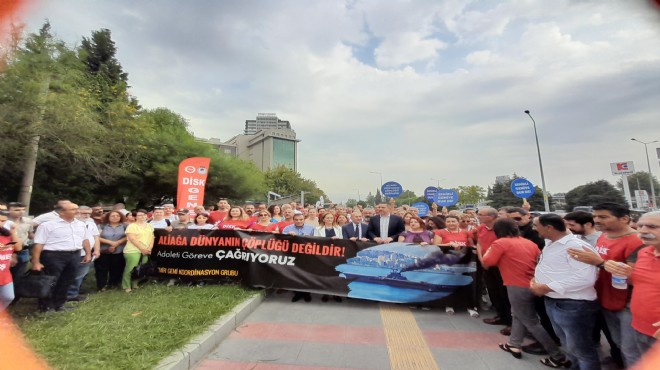 İzmir Barosu Başkanı Özkan Yücel de, “Bugün burada Türkiye’nin hasret kaldığı bir ilke şahitlik ediyoruz. İzmir’den bir sivil itaatsizlik hareketi başlattık bu çağrı Türkiye’ye ilişkindi. Bugün burada bütün Türkiye’yi temsil eder biçimde meslek örgütü temsilcileri ve sendika başkanları burada aynı çağrıya aynı talebe ortaklık ediyorlar. Bir taraftan sokağı bir taraftan mahkemeleri onlara dar etmeye kararlıyız. Her yolu deniyoruz bunlardan biri mahkeme. Yarın bu mahkemeden yürütmeyi durdurma kararı çıkmazsa denizleri de onlara dar etmeye kararlıyız. Onlara hatırlatalım onlar da İzmir’de yaşıyorlar İzmir’in zehirlenmesine izin vermemek kendileri için de gerekli bir şey. Gecikmeden karar verilmesi gerekir, savunma hadi alınmadan yürütmenin durdurulması kararı verilmesini istiyoruz” ifadelerini kullandı.