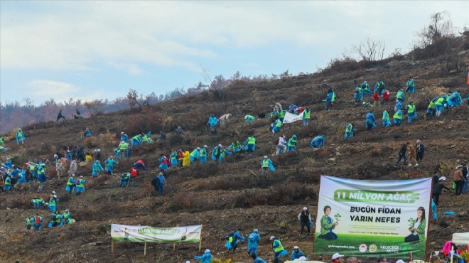 Yurt genelinde eş zamanlı başlatılan "11 Milyon Ağaç; Bugün Fidan, Yarın Nefes" kampanyası kapsamında İzmir'de yazın çıkan yangında hasar gören arazide fidan dikim etkinliği yapıldı.