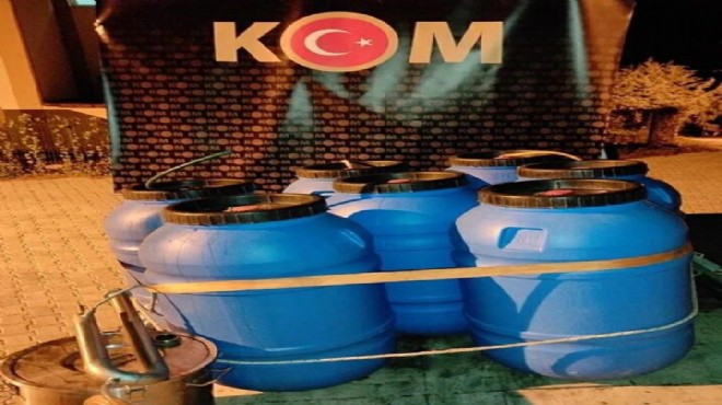 Çeşme İlçe Emniyet Müdürlüğü Kaçakçılık ve Organize Suçlarla Mücadele (KOM) Grup Amirliği ekipleri, Urla'nın Zeytineli Mahallesi'ndeki bir bağ evinde kaçak içki üretildiği bilgisi üzerine harekete geçti. Yapılan fiziki ve teknik takibin ardından belirlenen adrese operasyon düzenleyen ekipler, bağ evi ile müştemilatında arama yaptı. Yapılan çalışmada, 7 varil içerisinde, sahte olduğu belirlenen 1 ton şarap ile 45 litrelik etil alkol damıtma kazanı ele geçirildi. Operasyonda S.M. gözaltına alındı. S.M.'nin polisteki işlemlerinin sürdüğü bildirildi. (DHA)