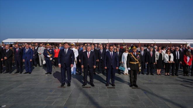 İzmir'deki tören, Sanayi ve Teknoloji Bakanı Mehmet Fatih Kacır, İzmir Valisi Süleyman Elban, Ege Ordusu ve Garnizon Komutanı Orgeneral İrfan Özsert ve İzmir Büyükşehir Belediye Başkanı Cemil Tugay'ın Cumhuriyet Meydanı'ndaki Atatürk Anıtı'na çelenk sunmasıyla başladı.