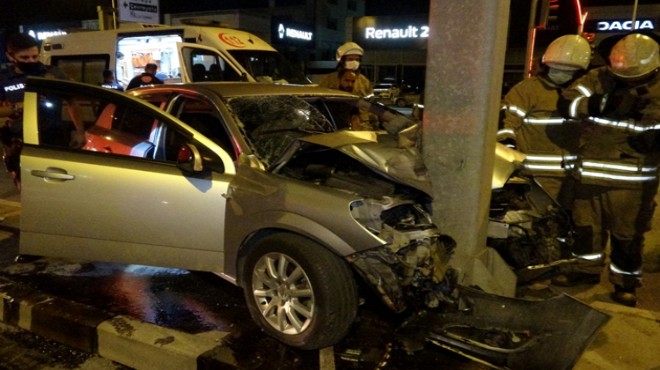 Gaziemir ilçesinde, sürücüsünün direksiyon kontrolünü kaybettiği otomobil yön levhasının ayağına çarptı. Kazada 2 kişi yaralandı.