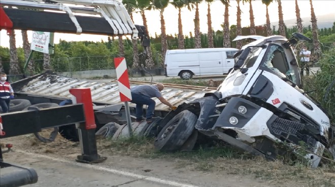 İzmir'in Ödemiş ilçesinde kanala devrilen kamyonun sürücüsü yaşamını yitirdi.