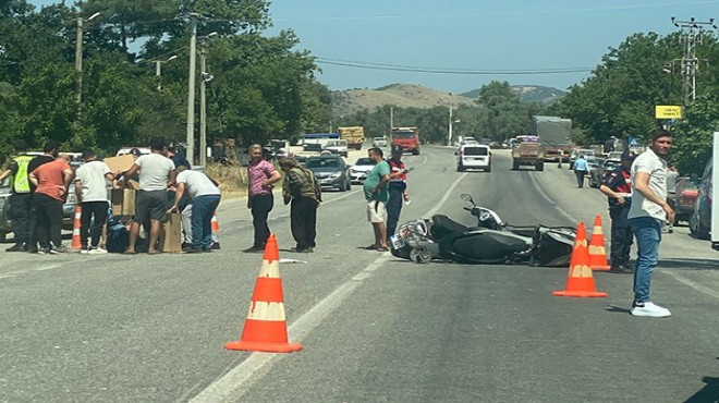 Işıklı Mahallesi Gökçen yolunda ilerleyen Hüseyin Filiz (16) idaresindeki 35 BSG 292 plakalı motosiklete, sola doğru manevra yaptığı sırada aynı yönde seyreden Şefike Cömert'in (45) kullandığı 35 BMC 567 plakalı motosiklet çarptı.