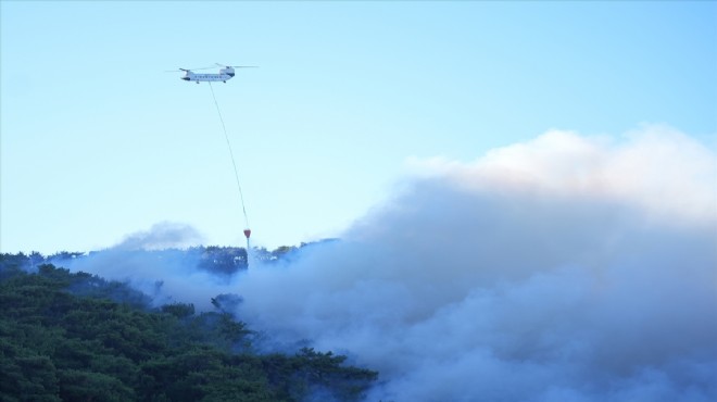 İzmir'in Karşıyaka, Urla ve Menderes ilçelerinde çıkan ormanlık ve makilik alanlardaki yangınlara havadan ve karadan müdahale devam ediyor.