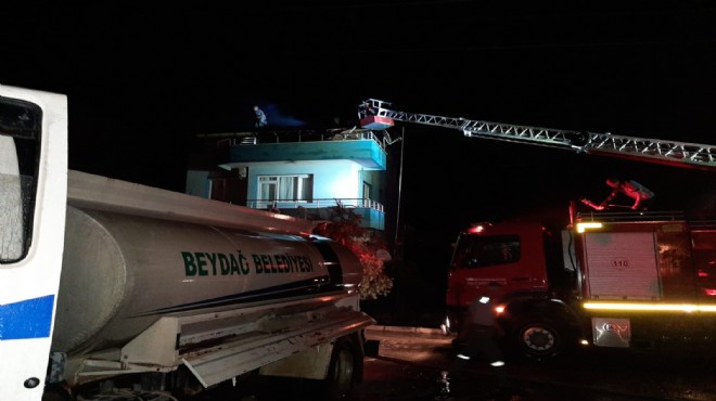 İZMİR - Beydağ ilçesinde, 3 katlı bir binanın çatısına yıldırım isabet etmesi sonucu yangın çıktı. Olayda ölen ya da yaralanan olmazken, binada hasar oluştu.