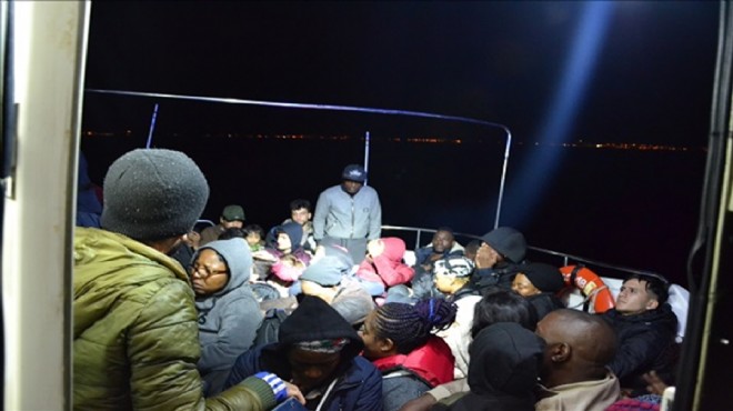 Durdurulan botta 19'u Filistin, 11'i Kongo, 7'si Orta Afrika ve 6'sı Gabon uyruklu 43 düzensiz göçmen yakalandı.