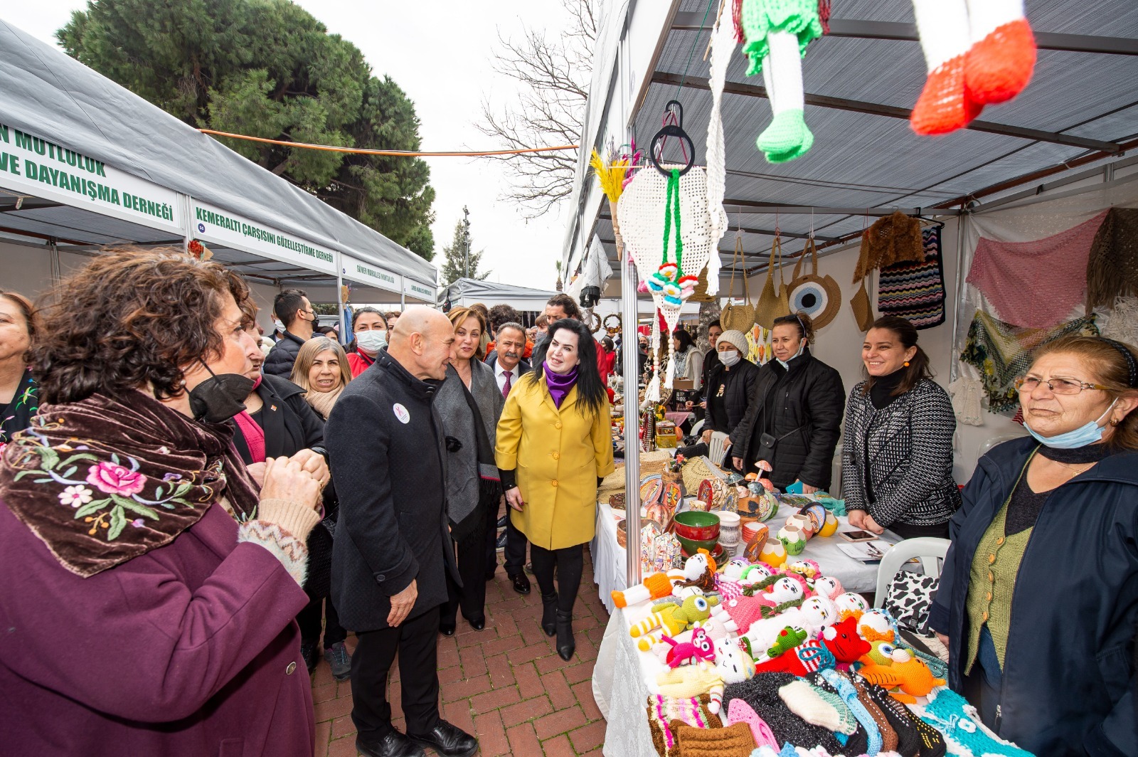Büyükşehir Belediye Başkanı Tunç Soyer’in “kadın dostu kent” vizyonu doğrultusunda 8 Mart Dünya Kadınlar Günü için altı günlük bir etkinlik programı hazırlandı. “Hayatın Her Alanında Kadınlarla Eşit ve Adil Bir Dünya” sloganıyla hazırlanan program, Kadın Emeği Sergi ve Satış Pazarı ile başladı. Tarihi Havagazı Fabrikası'nda başlayan etkinliklerin açılışına İzmir Büyükşehir Belediye Başkanı Tunç Soyer ile eşi Neptün Soyer, CHP Kadın Kolları Genel Başkanı Aylin Nazlıaka, İzmir Büyükşehir Belediyesi Başkan Vekili Mustafa Özuslu, İzmir Büyükşehir Belediyesi Genel Sekreteri Dr. Buğra Gökçe, İzmir Büyükşehir Belediyesi Meclis Üyesi ve CHP Grup Sözcüsü Nilay Kökkılınç, İzmir Büyükşehir Belediyesi Genel Sekreter yardımcıları, İzmir Büyükşehir Belediyesi bürokratları, ilçe belediye başkanları ile eşleri, kadın kooperatifleri, üretici kadınlar, muhtarlar, sivil toplum kuruluşları, odalar ve derneklerin başkanları ile temsilcileri, siyasi parti temsilcileri ve yurttaşlar katıldı. Başkan Soyer, stantları ziyaret ederek üretici kadınlarla sohbet edip fotoğraf çekildi.