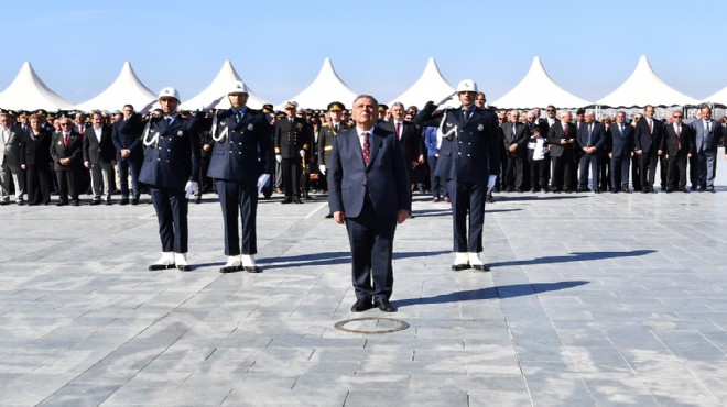 Törene İzmir Valisi Erol Ayyıldız, Ege Ordusu ve Garnizon Komutanı Orgeneral Abdullah Recep, İzmir Büyükşehir Belediye Başkanı Aziz Kocaoğlu, İzmir Milletvekilleri Tacettin Bayır, Hamza Dağ, Alpay Özalan, gaziler ve vatandaşlar katıldı.