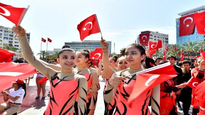 Ellerinde Türk bayrakları ile Cumhuriyet Meydanı'na akın eden İzmirliler, Atatürk'ün Gençliğe Hitabesi'ni hep bir ağızdan okuyarak İzmir'in bayram coşkusunu tüm Türkiye’ye gösterdi.