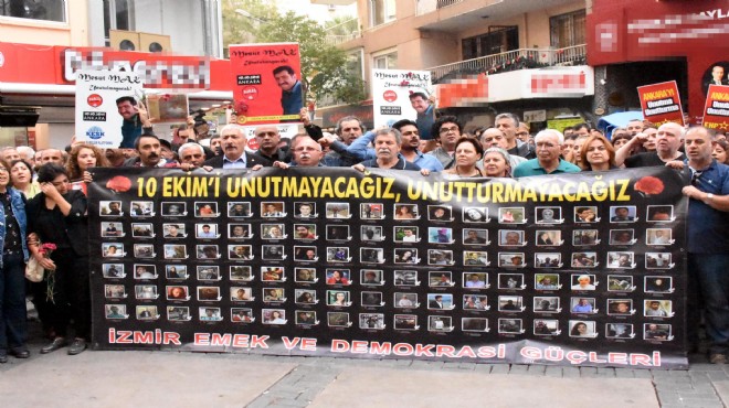 Alsancak Türkan Saylan Kültür Merkezi önünde bir araya gelen yaklaşık 100 kişilik grup, 10 Ekim 2015'te Ankara Garı'nda yapılan saldırıda hayatını kaybedenleri andı.