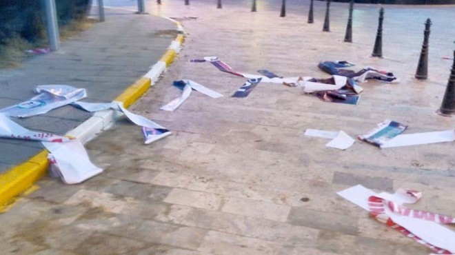 AK Parti Balçova İlçe Başkanı Evrim Özen'in şikayetçi olması üzerine sanıklar hakkında "mala zarar verme" suçundan 4 aydan 3 yıla kadar hapis cezası istemiyle dava açılmıştı. (AA)