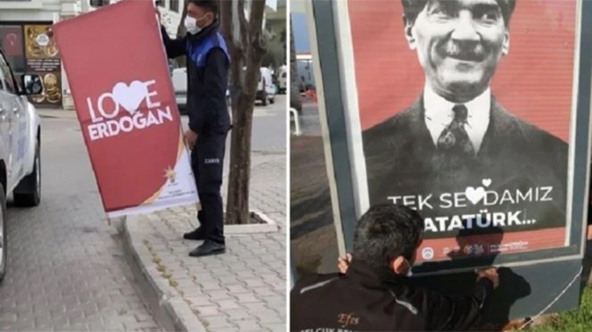Belediye ekipleri ise pankartların izin alınmadan asıldığını tespit ederek kaldırdı. İndirilen pankartlar tekrar AK Partililere teslim edildi. AKP’liler pankartları izin almadan tekrar astırdı. Zabıta ekipleri ikinci kez pankartları kaldırdı ve yerlerine 'Tek Sevdamız Atatürk' afişi astı.