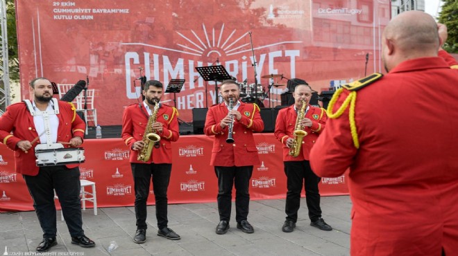 “Cumhuriyet Her Yerde” programı kapsamında 23 Ekim’de kutlamaların adresi Kiraz Yeni Mahalle olacak. 24 Ekim’de Menemen Gazi Mustafa Kemal Mahallesi, 25 Ekim’de Menderes Şehit Astsubay Ömer Halis Demir Parkı, 26 Ekim’de Bergama Ayaskent Mahallesi’nde, 27 Ekim’de Tire Merkez Gölet’te, 28 Ekim’de Selçuk Belevi Mahallesi’nde birbirinden farklı etkinlikler gerçekleştirilecek. 29 Ekim Cumhuriyet Bayramı’nda saat 10.00’da Selçuk Zeytinköy Mahallesi’nde bando gösterisi yapılacak. Saatler 18.00’i gösterdiğinde ise Selçuk Merkez İstasyon Meydanı’nda kortej yürüyüşü, Selçuk Belediyesi Orkestrası Konseri ve çocuklar için eğlenceli etkinlikler olacak. 29 Ekim Cumhuriyet Bayramı’nda ayrıca Dikili merkezde saat 20.00’de düzenlenecek konserler coşkuyu doruğa çıkaracak.