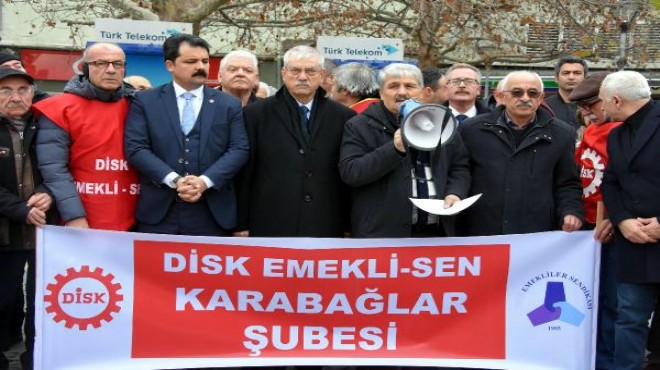 Konak Meydanı tarihi Saat Kulesi önünde toplanan Emekli-Sen üyesi 50 kişilik gruba, CHP İzmir Milletvekili Kani Beko ve CHP Konak İlçe Başkanı Çağrı Gruşçu da eşlik etti. Ellerinde pankart ve dövizler taşıyan üyeler adına basın açıklamasını okuyan Hüseyin Özkaynak, "Ülkede dört kişilik bir aile için açlık sınırı 2 bin 162 lira 70 kuruş ve yoksulluk sınırı 7 bin 444 lira 62 kuruşken, asgari ücretlilere yapılan zam ve TÜİK'in açıkladığı enflasyon rakamlarıyla beraber emeklilere yapılan zam ortadadır" dedi.