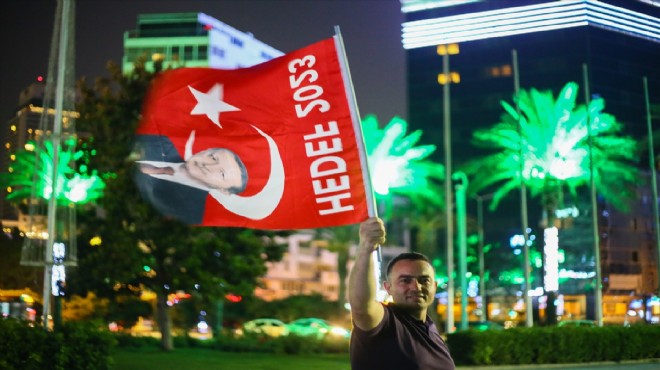 Cumhuriyet Meydanı'nda bir araya gelen grup üyeleri yaktıkları meşalelerle kutlama yaparken, Gaziemir Abdullah Arda Meydanı'nda da vatandaşlar uzun araç kuyrukları oluşturdu. Bazı vatandaşlar zeybek oynarken ellerinde AK Parti, MHP ve Türk bayrağı taşıyan gençler de Rabia ve bozkurt işareti yaptı. (AA)