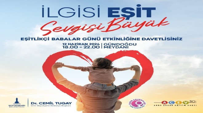 Toplumsal cinsiyet eşitliği konusunda erkeklere yönelik farkındalık çalışmaları yürüten İzmir Büyükşehir Belediyesi Kadın Çalışmaları Şube Müdürlüğü, 16 Haziran Babalar Günü nedeniyle Anne Çocuk Eğitim Vakfı (AÇEV) iş birliği ile Eşitlikçi Babalar Günü etkinliği düzenliyor. 12 Haziran Çarşamba günü Gündoğdu Meydanı’nda yapılacak etkinlikte, 18.00-20.00 saatleri arasında geleneksel çocuk oyunları, spor faaliyetleri ve atölyeler gerçekleştirilecek. 19.30’da DJ performansı ve 20.00’de İzmir Büyükşehir Belediyesi Çocuk Şarkıları Orkestrası sahne alacak. Saatler 21.00’i gösterdiğinde Hocalar Band Babalar Günü Özel Konseri, coşkuyu doruğa çıkaracak. Babalar ve çocuklarına unutamayacakları bir gün yaşatacak olan Eşitlikçi Babalar Günü etkinliği, eşit yaşam ve adil iş bölümü mesajı da verecek.