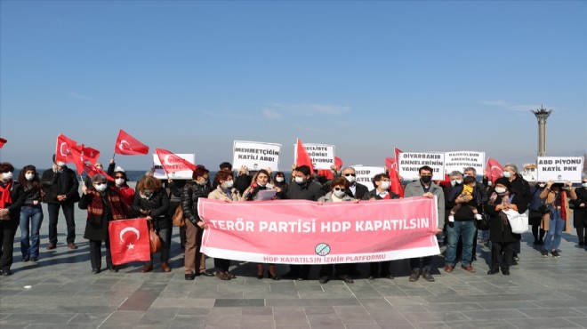 İzmir'de, Vatan Partisi üyeleri ile bazı sivil toplum kuruluşu temsilcileri, basın açıklamasıyla HDP'nin kapatılmasını talep etti.