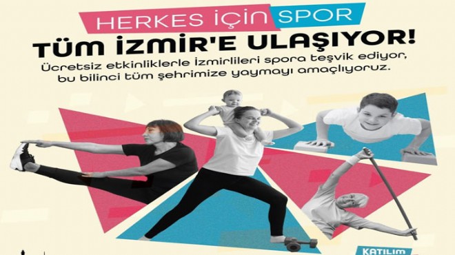 İzmir Büyükşehir Belediyesi, toplumun tüm kesimlerinin spor olanaklarına rahatlıkla ulaşabilmesi için haftanın her günü ücretsiz spor faaliyetleri düzenliyor. Türkiye Sağlıklı Kentler Birliği Başkanı ve İzmir Büyükşehir Belediye Başkanı Dr. Cemil Tugay’ın “Spor Kenti İzmir” hedefi doğrultusunda bir yandan amatör spor kulüplerine nakdi destek ve malzeme yardımı yapılırken, bir yandan da tesis yatırımları sürüyor. Buca, Bornova, Gaziemir, Karşıyaka ve Menderes’te 21 bin metrekare büyüklüğünde 3 Uluslararası Futbol Federasyonu onaylı futbol sahası, 4 halı saha ve 1 ilçe atletizm parkuru için 16 milyon TL yatırım yaparak yenileme çalışmasını tamamlayan Büyükşehir, "Herkes İçin Spor" başlığı altında ücretsiz spor etkinlikleri de yapıyor. Farklı spor salonlarında uzman eğitmenler tarafından hazırlanan programlarda kalp sağlığını iyileştiren, kas iskelet sistemi ve eklem sağlığını güçlendiren, genel sağlığı artıracak egzersizler yapılıyor. Programlara katılmak isteyenlerin, yararlanmak istediği tesiste yüz yüze kayıt yaptırması gerekiyor.