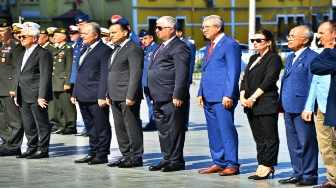 İzmir Cumhuriyet Meydanı’nda yapılan törene İzmir Büyükşehir Belediyesi Başkan Vekili Mustafa Özuslu, İzmir Vali Yardımcısı Barış Demirtaş, KKTC'nin İzmir Başkonsolosluğu Muavin Konsolosu Almıla Tunç, Dışişleri Bakanlığı İzmir Temsilcisi Vekili Adnan Zafer Bekçekaral, Ege Ordusu Kurmay Başkanı Tuğgeneral Selçuk Yavuz, Hava Eğitim Komutanlığı Kurmay Başkanı Tuğgeneral Mustafa Tarkan Gümüş, Güney Deniz Saha Komutanlığı Kurmay Başkanı Tuğamiral Fatih Sezal, İstihkam Okulu ve Merkez Komutanı Tuğgeneral Mehmet Rıfat Alkan, gaziler, şehit yakınları, rektörler, siyasi parti temsilcileri ve vatandaşlar katıldı.