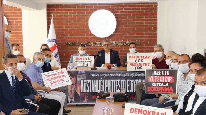Memur-Sen İzmir İl Temsilcisi Ali Kaya, grup adına yaptığı açıklamada, insanların inançlarını hedef almanın özgürlük değil küstahlık olduğunu belirterek, "Bu manada Memur-Sen, dün olduğu gibi bugün de inancımıza, değerlerimize ve kutsallarımıza karşı yapılan her türlü söylem ve eylemin karşısında olacaktır." dedi.