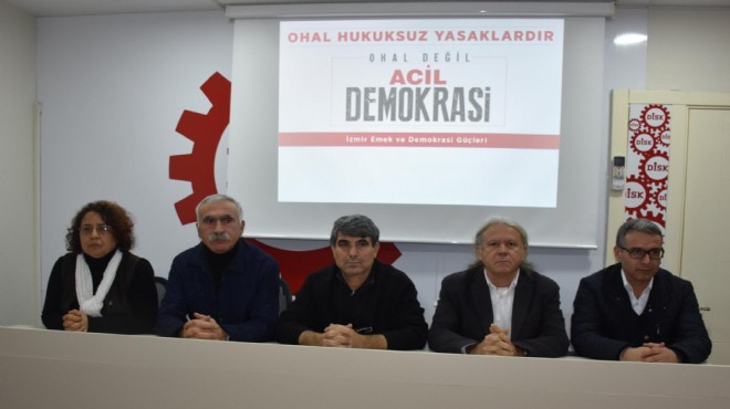 İzmir Emek ve Demokrasi Güçleri karar sonrası basın toplantısı düzenledi. Düzenleme Kurulu Başkanı KESK Dönem Sözcüsü İsmet Süzer ortak basın metnini okudu. Süzer, OHAL yasaklarına ve baskılarına karşı bu yasak ve baskıların mağdurlarının sesini yükseltmek amacıyla 23 Aralık 2017 tarihinde düzenlemek istedikleri 'OHAL Değil, Acil Demokrasi Mitingi'nin, İzmir Valiliği tarafından yasaklandığını belirterek, şöyle dedi: