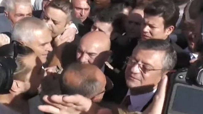 VIP’tan Başkan Soyer ve CHP İl Başkanı Aslanoğlu ile yan yana çıkan Genel Başkan Özel yaşanan izdiham nedeniyle yoğun sevgi gösterileri arasında yürümekte uzun süre zorlandı.