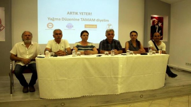 Bir korku imparatorluğu yaratıldığını iddia eden Dr. Çamlı, devlet içinde kadrolaşma politikaları ile yargının bağımsızlığını tamamen yitirdiğini savundu. Cumhuriyetin kurulduğu günden bu yana büyük emeklerle yaratılan ne kadar fabrika, işletme, kurum varsa özelleştirildiğini dile getiren Lütfi Çamlı, "Ülkemizde üretime dayalı bir ekonomi yerine inşaat sektörüne dayalı rant ekonomisi yaratılmıştır. Uygulanan tarım politikaları ile ithalat hızla artmış, çiftçiler yüksek girdi maliyetleri nedeniyle üretimden kopmuş, kırdan kente göç artmış ve yeni kent yoksulları olarak çiftçiler kent nüfusuna ucuz işgücü olarak katılmış ve emek sömürüsü derinleşmiştir. Kentlerimizin büyük bölümünde yaşam alanları plansız yapılaşma ile yok edilmiştir. Ormanlarımız kıyılarımız doğal yaşam alanlarımız, tarım alanlarımız, zeytinliklerimiz yapılaşmaya açılmıştır. Eğitim gericileştirilmiş çocuklarımız imam hatip okullarına zorlanmış eğitim sistemi kullanılarak dinci ve kinci bir nesil yaratılmaya çalışılmıştır. Sağlık ticarileştirilmiş halkın ücretsiz nitelikli sağlık hizmetine erişimi güçleşmiştir. Uygulanan yağma politikalarıyla ülkemiz ekonomik, siyasi ve sosyal olarak uçurumun kenarına kadar gelmiştir. Biz emek ve meslek örgütleri olarak diyoruz ki artık yeter. Yağma düzenine son. Bu düzeni değiştirin" diye konuştu.