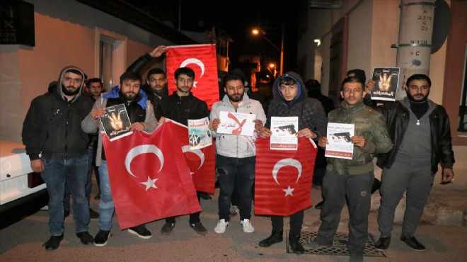Ülkelerindeki iç savaştan kaçarak Buca'nın Gediz Mahallesi'ne yerleşen bir grup Suriyeli, ellerinde Türk bayrağı, Arapça ve Türkçe "Uyuşturucu öldürür", "Uyuşturucu silah gibidir", "Uyuşturucuya hayır" yazılı pankartlarla Buca Polis Merkezi'ne gitti.